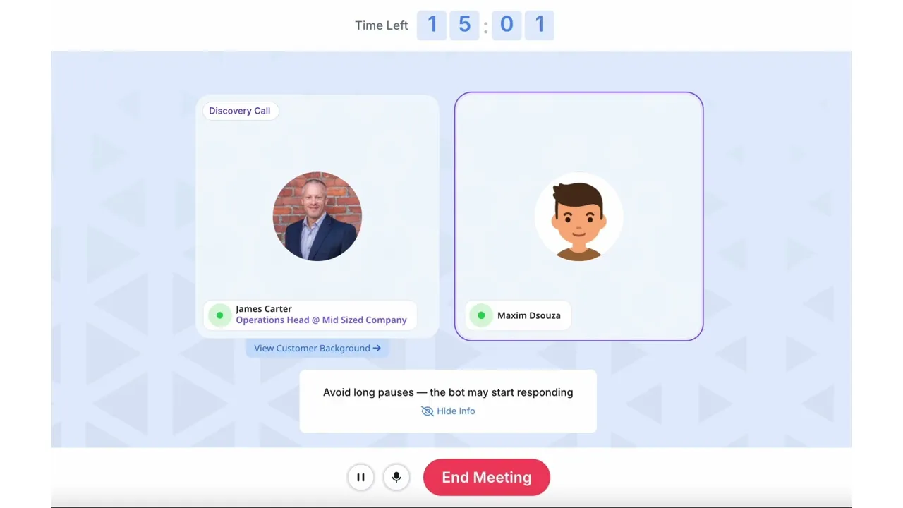 Train SDRs and AEs with AI roleplay bots that simulate real B2B buyers-decision-makers, influencers, and buying committees with realistic conversations around business pain points, budgets, timelines, and objections, so reps are prepared to win complex deals.