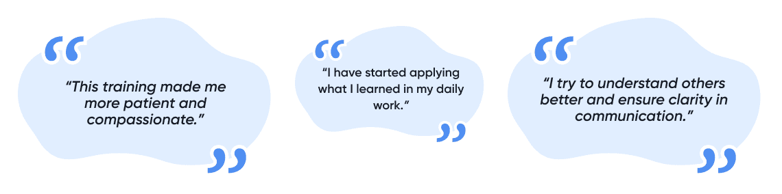 Learners highlighted the practical applicability of the program, its relevance to real work scenarios, and its impact on confidence and day-to-day effectiveness.