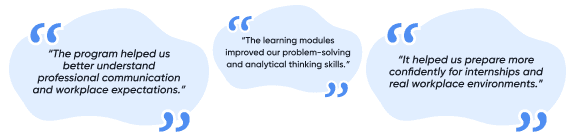 Students highlighted improvements in communication skills, problem-solving ability, and confidence in preparing for internships and professional environments.