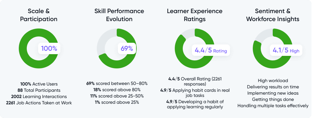 This initiative demonstrates how organizations can strengthen analytical problem-solving capabilities by introducing structured learning journeys supported by habit-based application and measurable engagement insights. By shifting from traditional training sessions to continuous workplace learning, the manufacturing enterprise established a scalable framework that enables employees to apply analytical thinking, improve operational outcomes, and sustain long-term capability development.