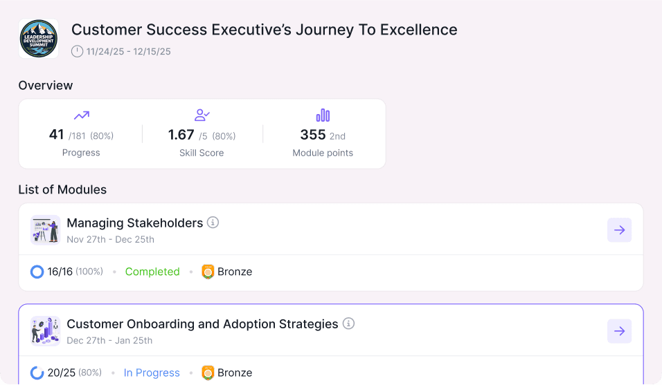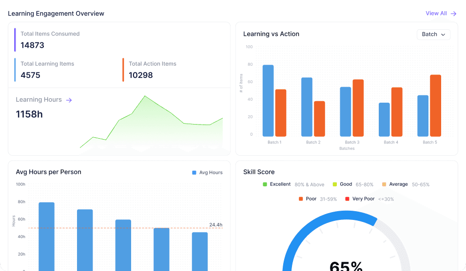 Track learner progress with skill scores, helping spot high performers and areas needing attention.