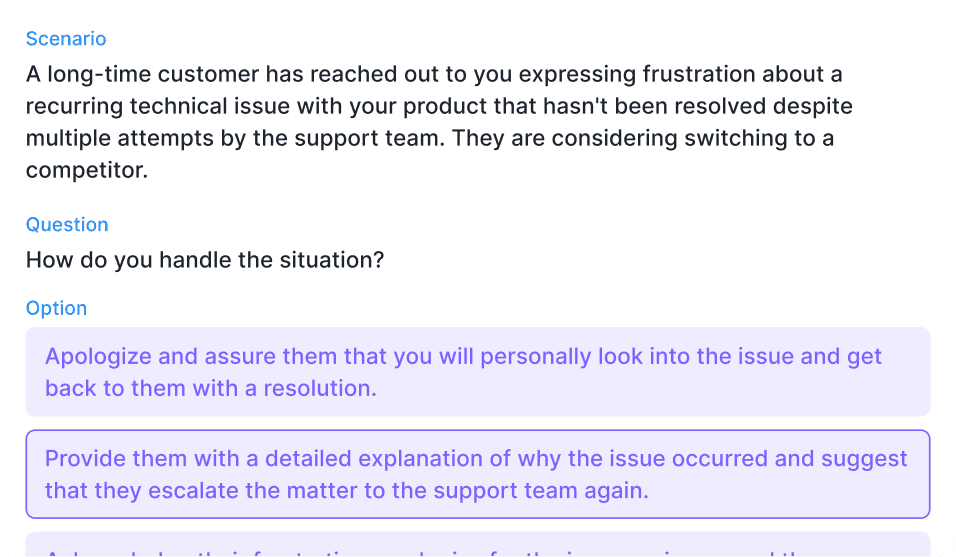 Engage employees with personalized AI-driven exercises that encourage active participation and reinforce key concepts.