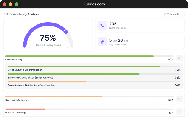 Poor call quality can hinder your sales process, but without detailed insights, it’s hard to know why. Our platform breaks down each sales call by key factors like objection handling, product knowledge, and customer intelligence, helping you understand exactly where your reps excel—and where they need improvement.
